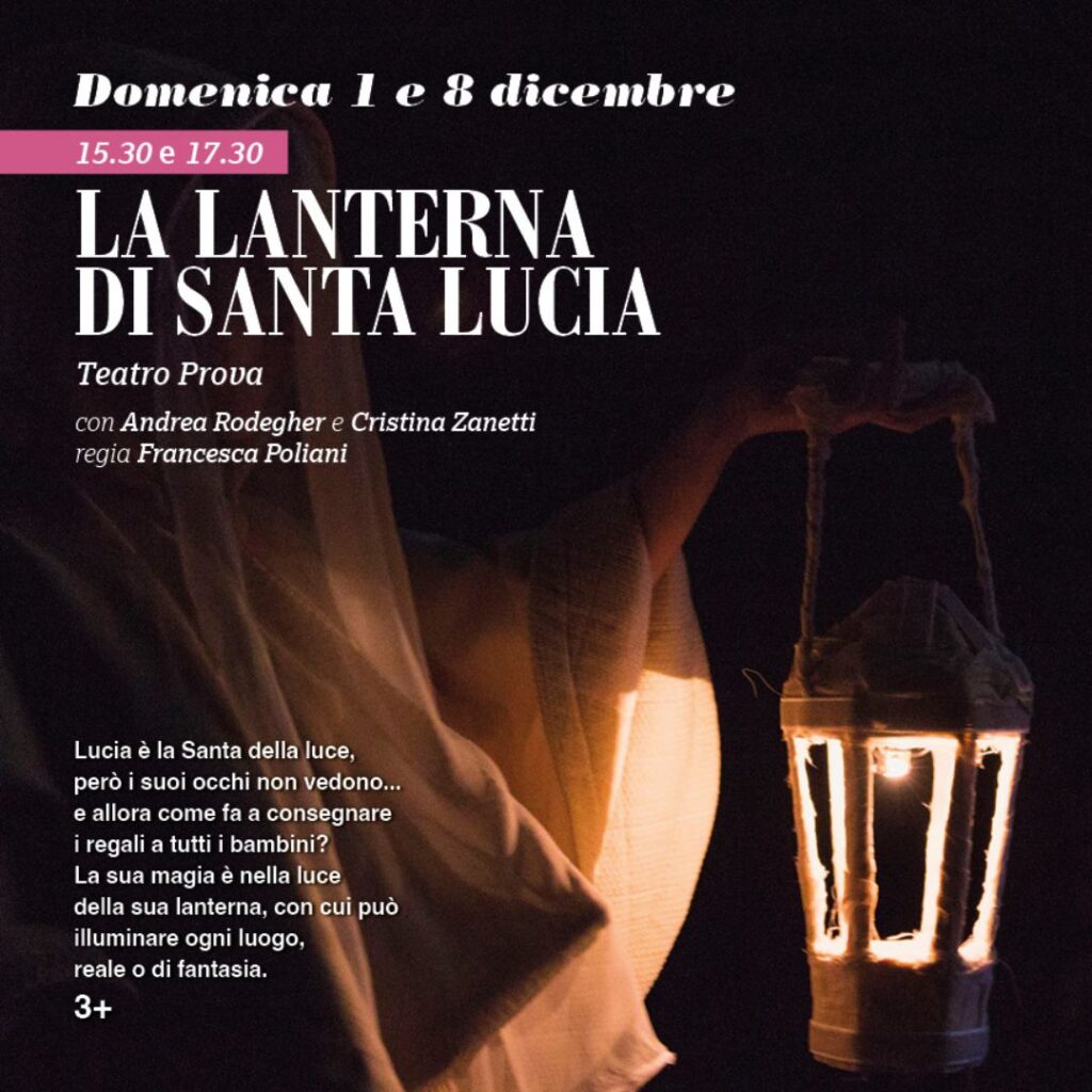 : Il 1° dicembre alle 15:30 e alle 17:30, il Teatro San Giorgio di Bergamo ospita “La lanterna di Santa Lucia”, uno spettacolo per bambini dai 3 anni. La storia narra di un padre che, la notte tra il 12 e il 13 dicembre, si perde e incontra una donna bisognosa d’aiuto, vivendo un’avventura magica che lo riporta alla sua infanzia.
