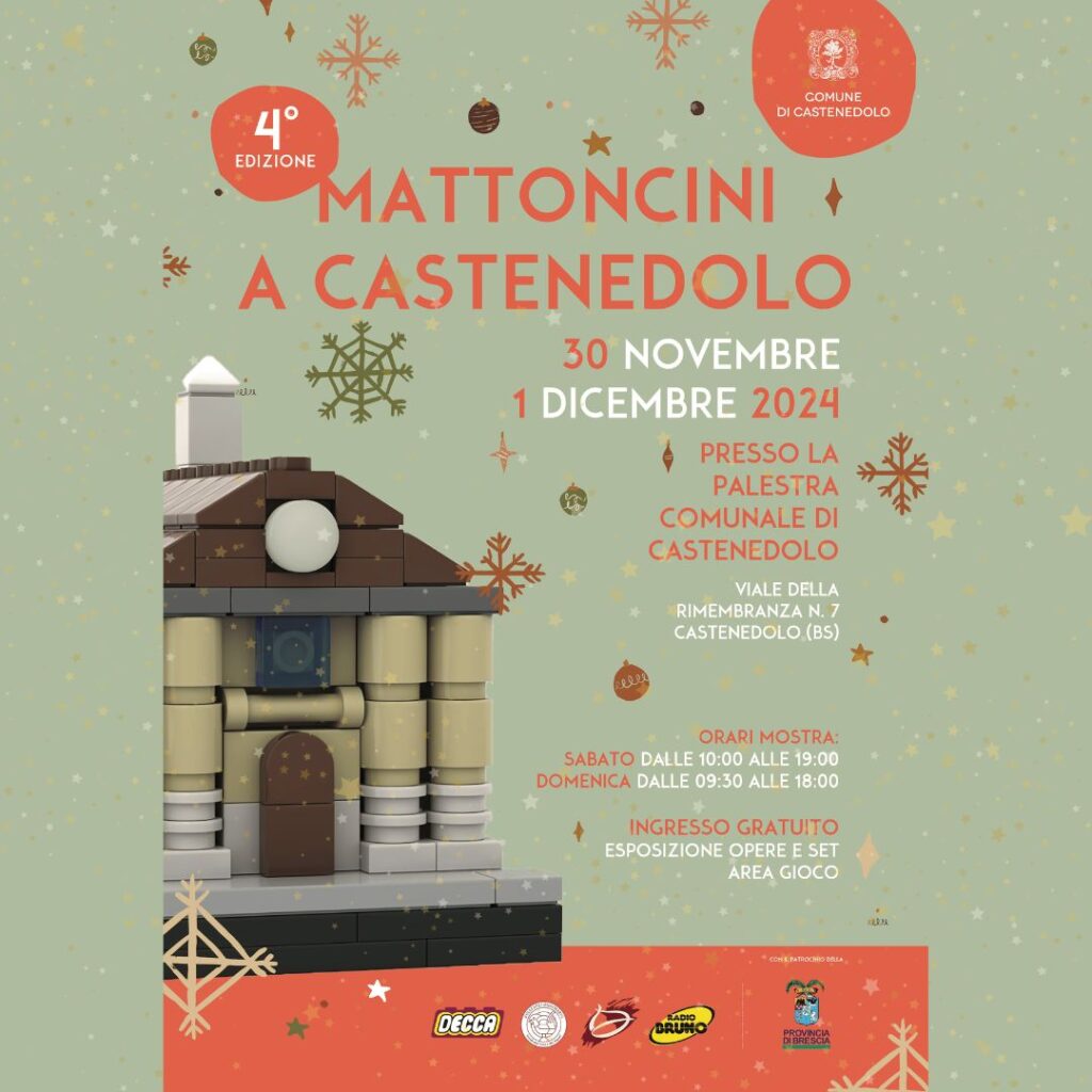 Sabato 30 novembre e domenica 1 dicembre, presso la Palestra Comunale di Castenedolo, torna la 4ª edizione di Mattoncini a Castenedolo! Un evento dedicato agli appassionati dei celebri mattoncini con esposizioni straordinarie e un’area gioco dove i bambini potranno creare e divertirsi.