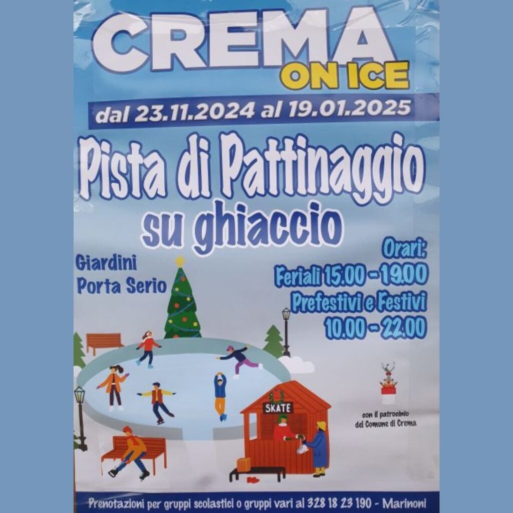 Presso i Giardini di Porta Serio arriva “Crema On Ice“, la pista di pattinaggio su ghiaccio aperta a bambini e adulti! Perfetta per trascorrere momenti speciali in famiglia o con gli amici, tra sport e divertimento!