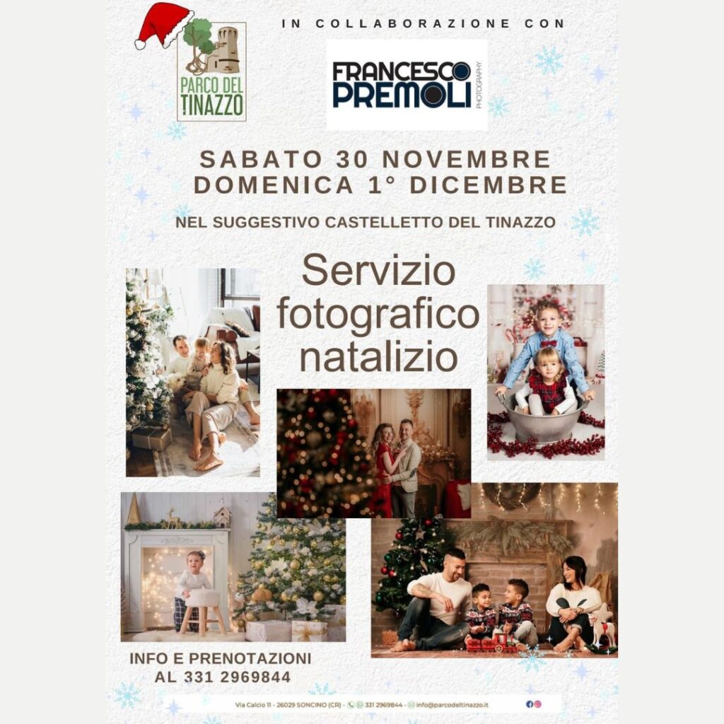 Il 30 novembre e il 1° dicembre, nel suggestivo Castelletto del Tinazzo a Soncino, regalati un ricordo speciale con il servizio fotografico natalizio. Un’occasione unica per immortalare la magia del Natale in famiglia, in un’atmosfera calda e festosa.