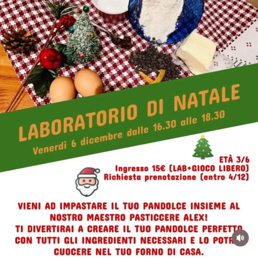 Venerdì 6 dicembre, dalle 16:30 alle 18:30, porta il tuo piccolo chef (età 3-6 anni) a scoprire la magia del Natale in cucina! Con il maestro pasticcere Alex, i bambini si divertiranno a impastare e preparare il loro pandolce da cuocere a casa.
