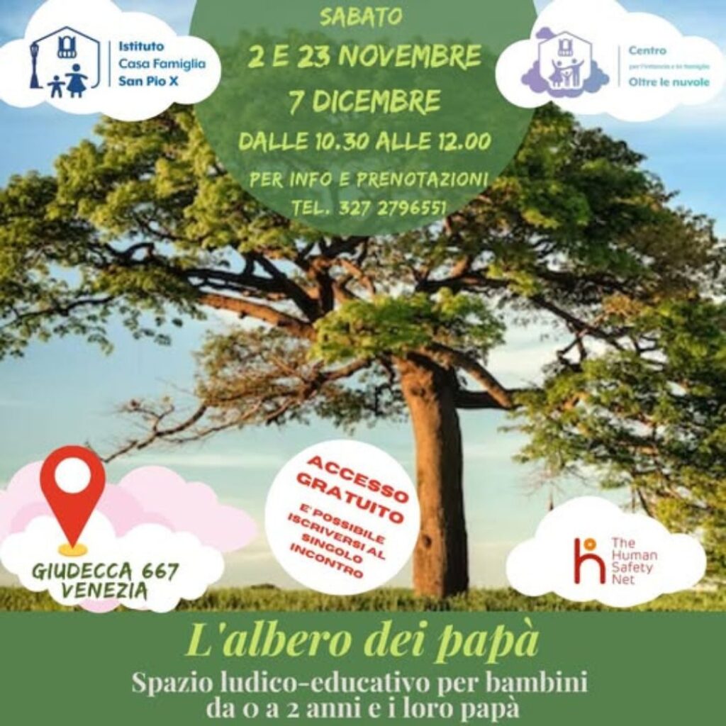 L’Albero dei Papà ti aspetta sabato 7 dicembre per l’ultimo appuntamento! Uno spazio dedicato ai papà e ai loro bambini (8 mesi – 2 anni), con attività ludico-motorie ed esperienziali seguite da un momento di confronto tra padri. Un’occasione unica per riflettere su relazioni e crescita.