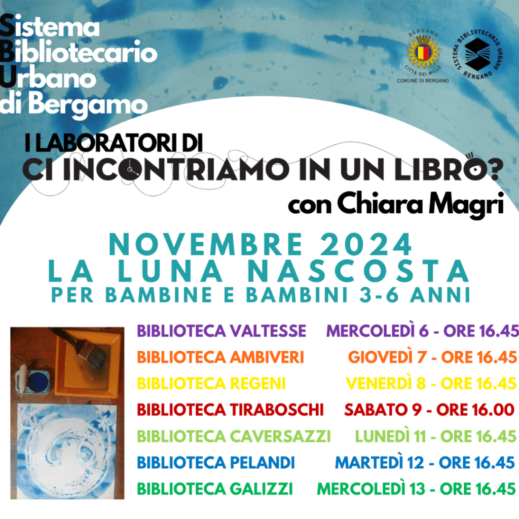 I laboratori di novembre “La luna nascosta” aspettano i piccoli esploratori in diverse biblioteche di Bergamo! Attraverso letture animate e attività creative, i bambini scopriranno i misteri della luna e dello spazio, combinando scienza e fantasia. Un’occasione unica per imparare e divertirsi, stimolando la curiosità in un ambiente accogliente e coinvolgente in tutta la città.