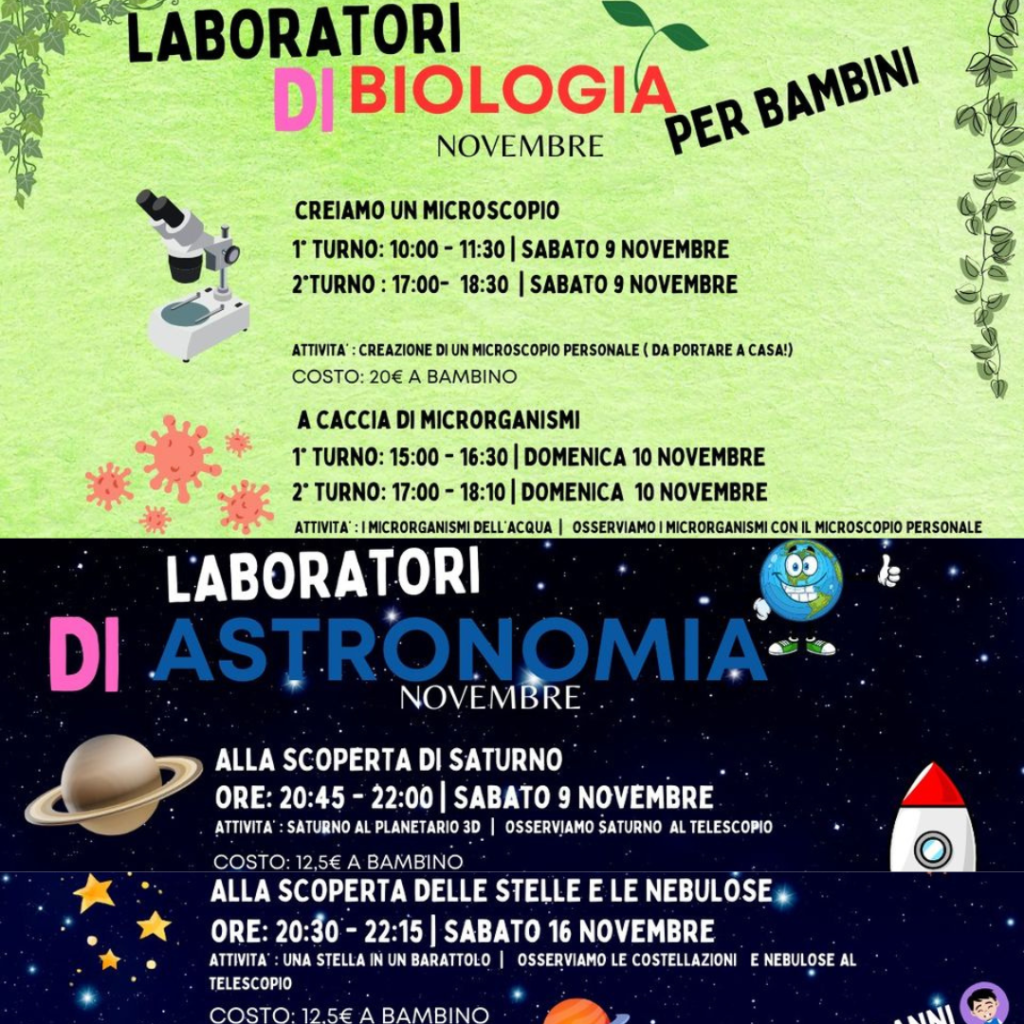 9-10 novembre: Laboratori di Biologia e Astronomia