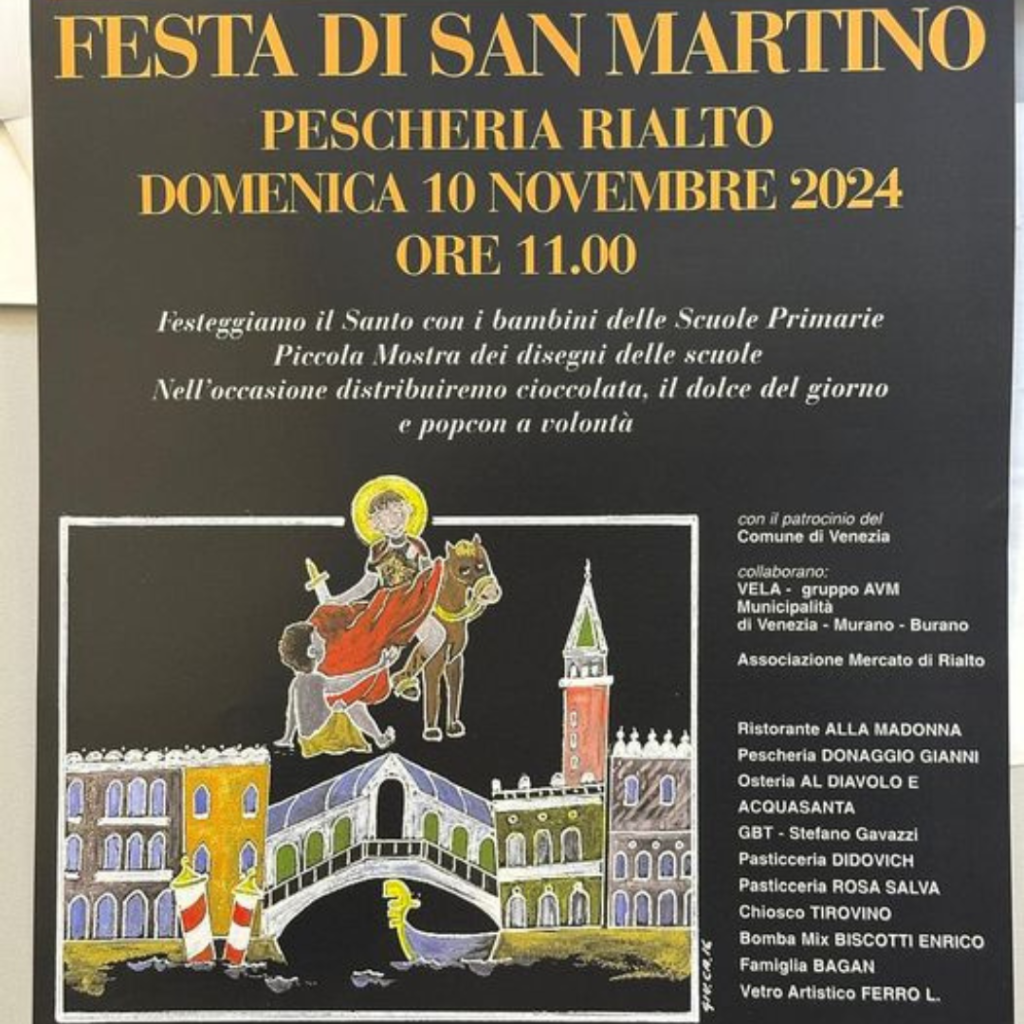 L’Associazione Rialto Mio organizza la Festa di San Martino, un evento dedicato ai bambini delle scuole primarie per celebrare il santo patrono. Saranno esposti disegni realizzati dagli alunni, mentre cioccolata, dolci tipici e popcorn verranno distribuiti a volontà. Una giornata di festa e tradizione per grandi e piccoli, nel cuore di Venezia.