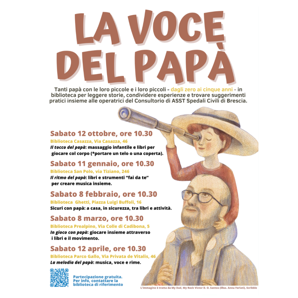 Tanti papà con le loro piccole e i loro piccoli – dagli 0 ai 5 anni – in biblioteca per leggere storie, condividere esperienze e trovare suggerimenti pratici insieme.