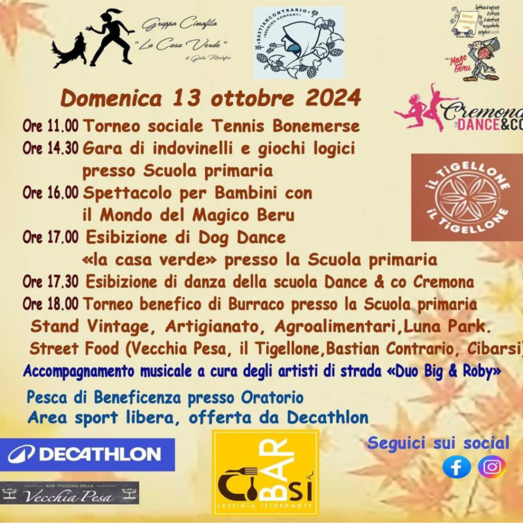 Fiera di ottobre a Bonemerse, aperta a tutti, quest’anno con grandi novità, divertimento e compagnia assicurati!