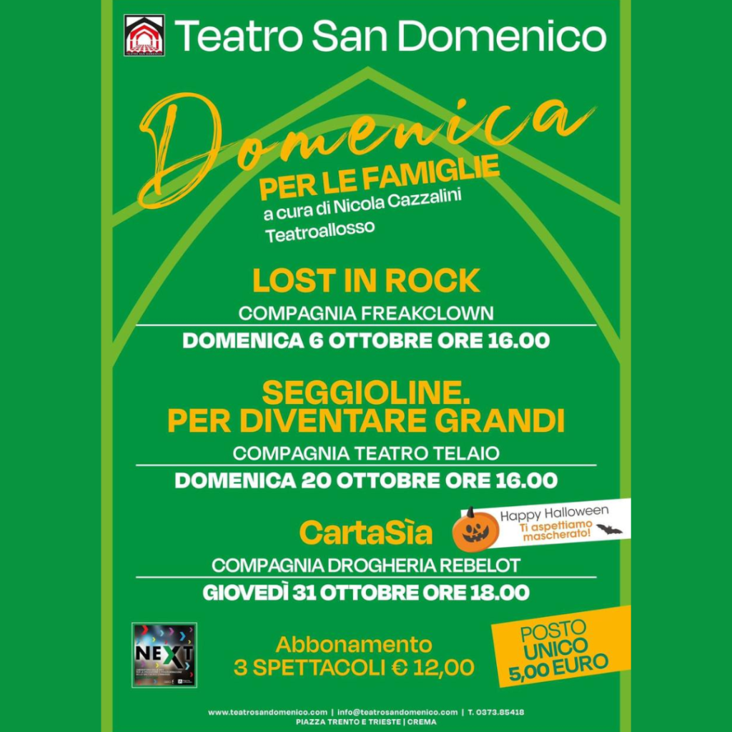 La rassegna “Domenica per le famiglie” si apre domenica 6 ottobre alle ore 16:00 con “Lost in rock” della Compagnia Freakclown.
